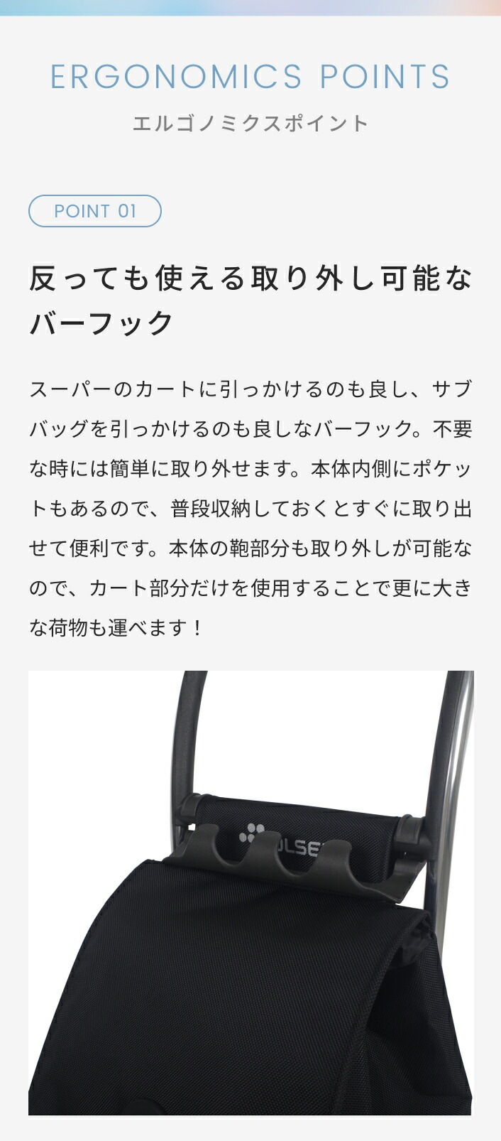 ・カートをより安全にご使用してもらうためにも、重い荷物は底にお入れください。